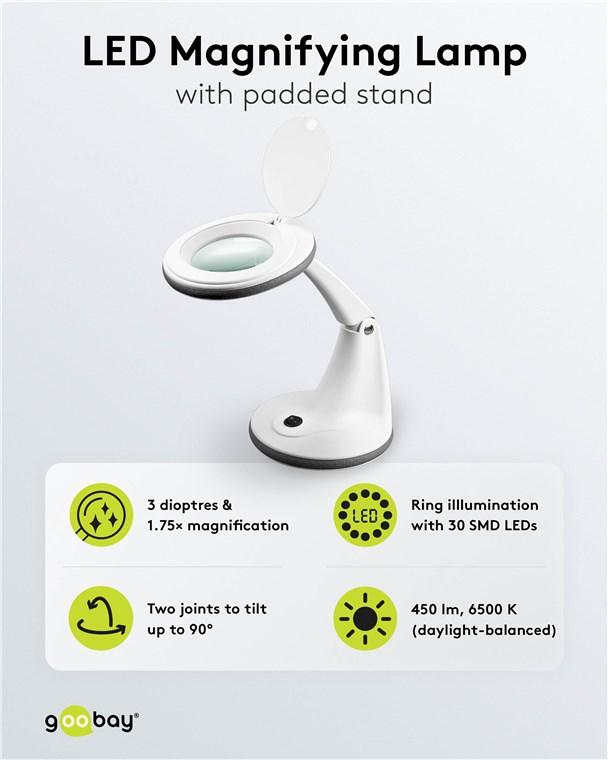Käytännöllinen ja monikäyttöinen LED-suurennuslasivalaisin, joka tarjoaa varjottoman ja tasaisen päivänvalon sävyisen valon, erityisesti tarkkuustyöhön. Tämä 6 W suurennuslasivalaisin on varustettu 450 lumenin valoteholla ja 100 mm lasilinssillä, jossa on 1,75x suurennus (3 dioptriaa). Sopii erinomaisesti kauneudenhoitoon, lukemiseen sekä käsitöihin ja tarkkuutta vaativiin töihin, kuten kirjontaan ja juottamiseen.