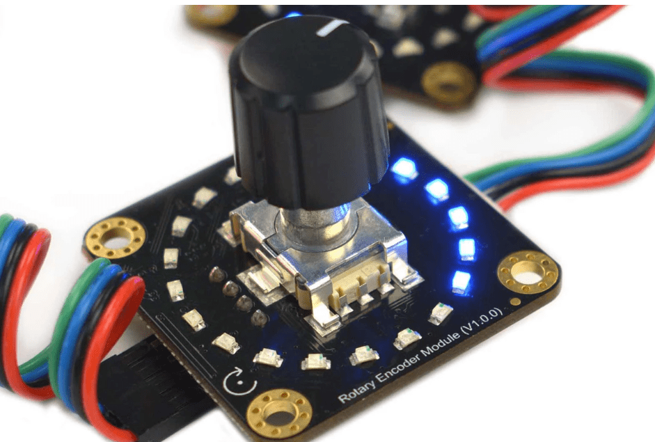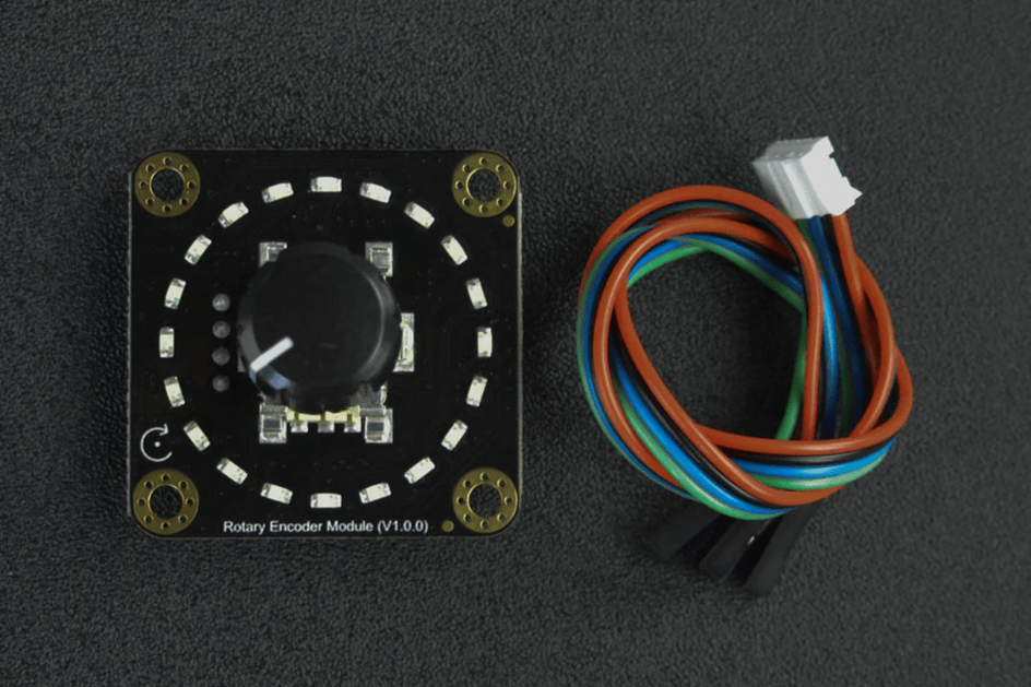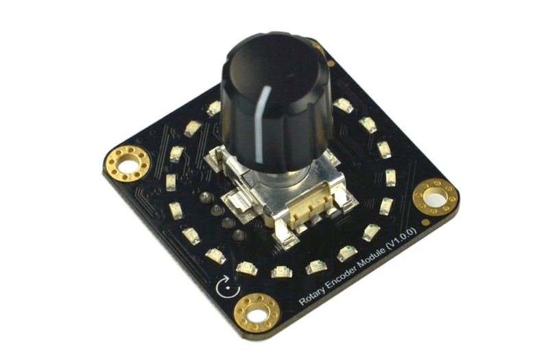DFRobot SEN0502 on 360 asteen pyörivä enkooderimoduuli, joka muistuttaa ulkoisesti potentiometriä, mutta toimii enkooderi-kytkimenä. Se tarjoaa 20 pulssia per kierros, ja jokainen pulssi vastaa yhtä askellusta. Jokaiselle askellukselle on asetettu LED-merkkivalo, joka näyttää reaaliaikaisen tilan.